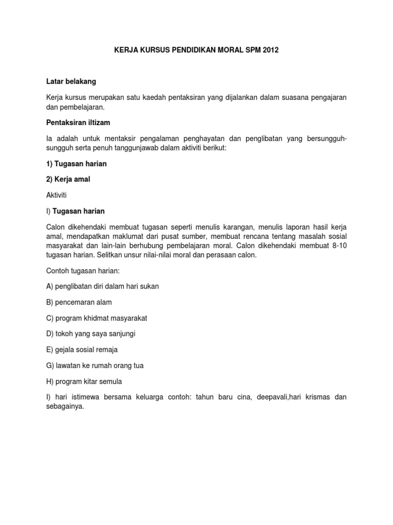Kerja Kursus Pendidikan Moral Spm Pdf
