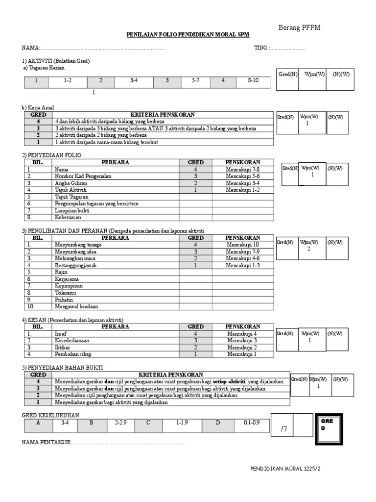 Borang Penilaian Folio Pendidikan Moral Spm Pdf